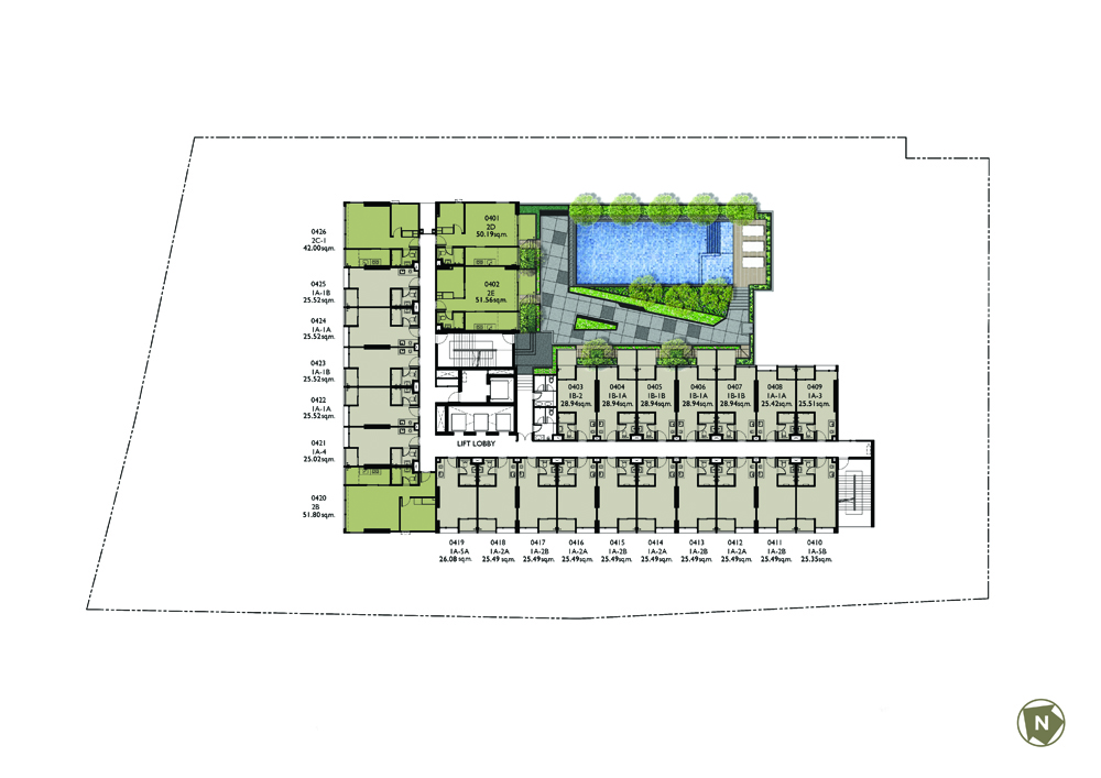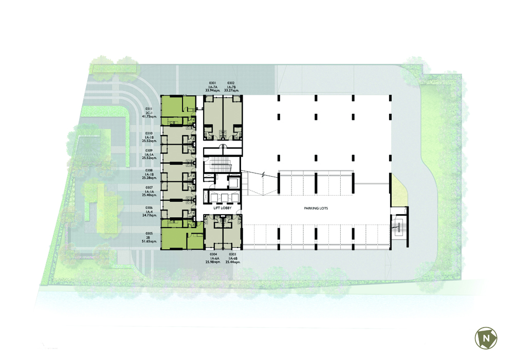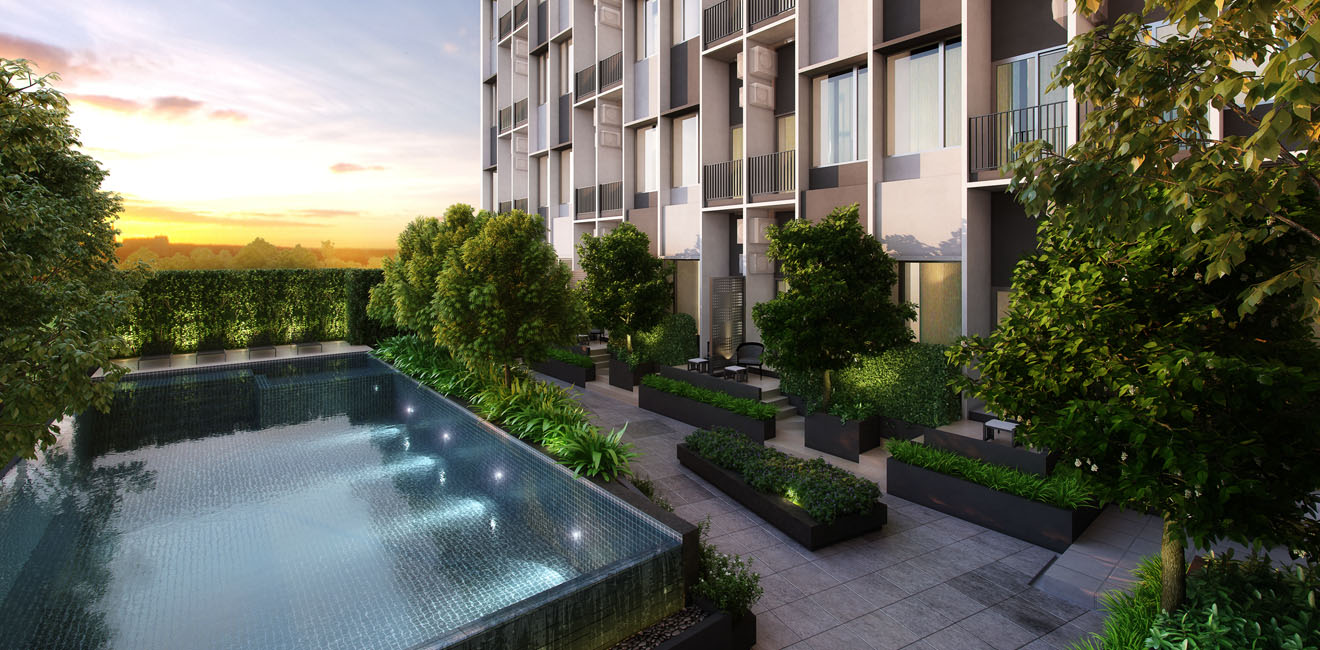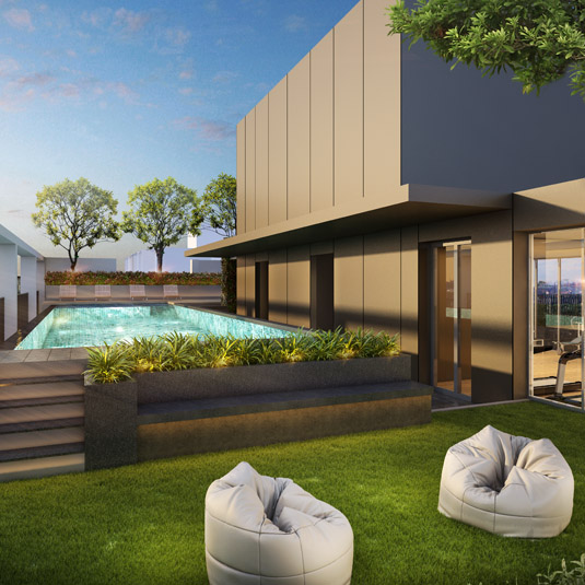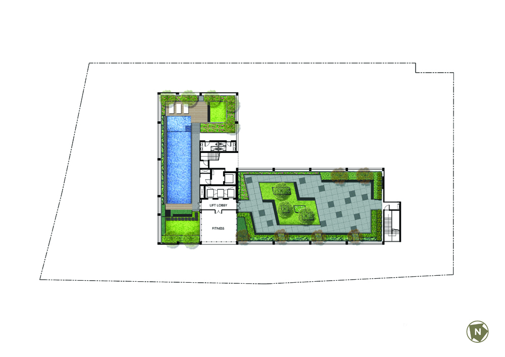 - สวนพักผ่อนด้านหน้าโครงการและชั้นดาดฟ้า,